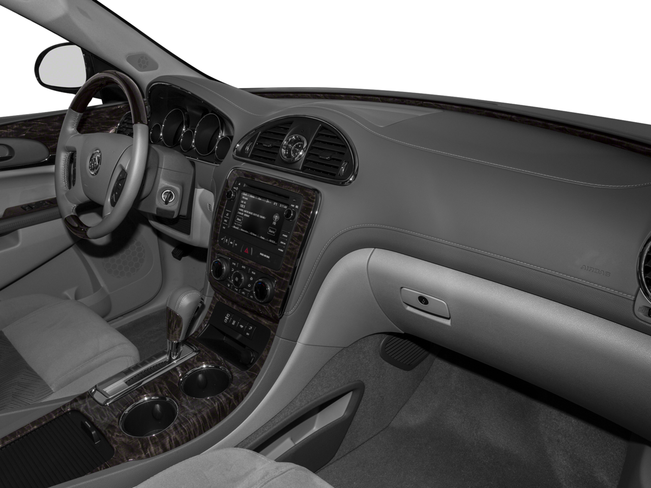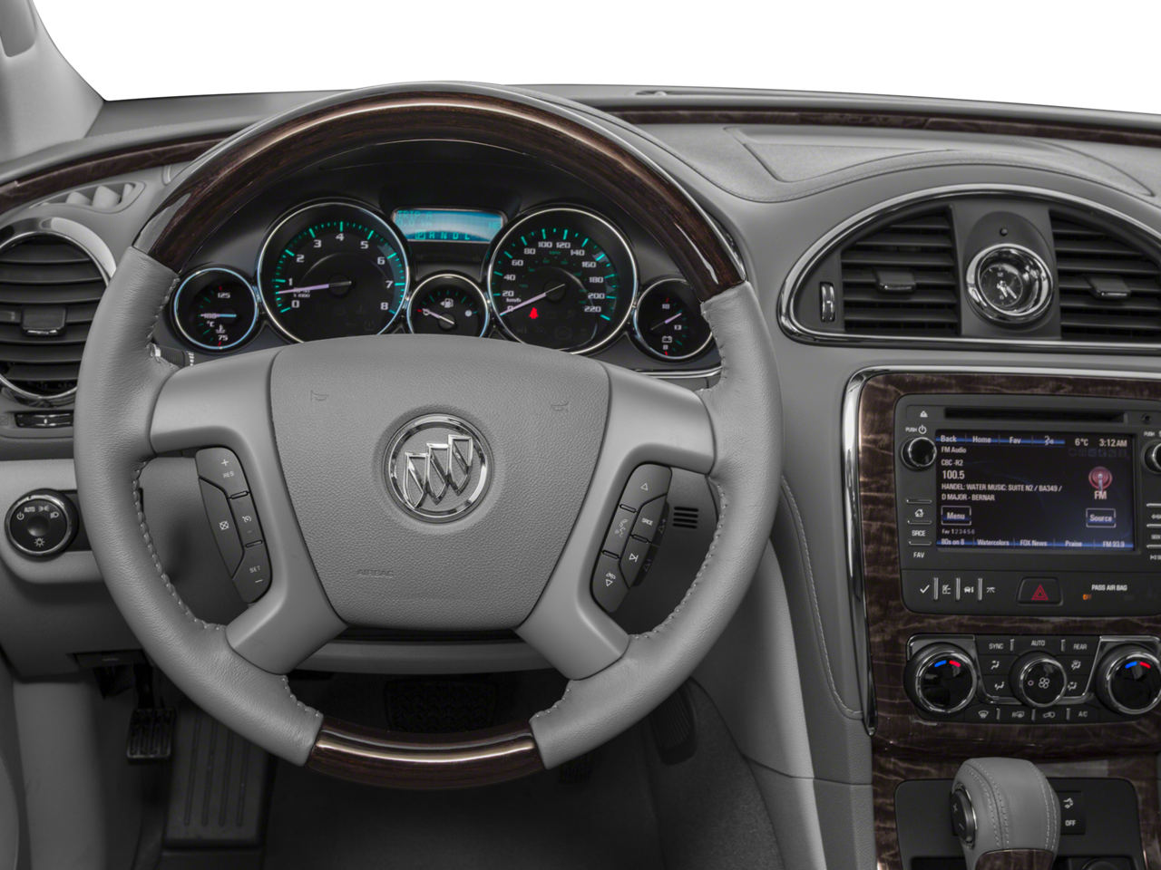 FWD, 3.16 Axle Ratio, 3rd row seats: split-bench, 4-Wheel Disc Brakes, 6 Speakers, 7-Passenger Seating, 8-Way Power Driver Seat Adjuster, 8-Way Power Passenger Seat Adjuster, ABS brakes, Air Conditioning, Alloy wheels, AM/FM radio: SiriusXM, Auto-dimming Rear-View mirror, Automatic temperature control, Bose Performance-Enhanced 10-Speaker System, Brake assist, Bumpers: body-color, CD player, Compass, Delay-off headlights, Driver door bin, Driver vanity mirror, Dual front impact airbags, Dual front side impact airbags, Electronic Stability Control, Emergency communication system: OnStar Guidance, Enclave Sport Touring Edition, Exterior Parking Camera Rear, Four wheel independent suspension, Front anti-roll bar, Front Bucket Seats, Front Center Armrest w/Storage, Front dual zone A/C, Front License Plate Mounting Bracket, Front reading lights, Fully automatic headlights, Garage door transmitter, Heated door mirrors, Heated Driver & Front Passenger Seats, Heated front seats, Heated Steering Wheel, Heated steering wheel, High intensity discharge headlights: Bi-Xenon, Ice Toned Satin Black Grille, Illuminated entry, Leather steering wheel, Low tire pressure warning, Memory seat, Memory Settings, NavTraffic, Occupant sensing airbag, Outside temperature display, Overhead airbag, Panic alarm, Passenger door bin, Passenger vanity mirror, Perforated Leather-Appointed Seat Trim, Power door mirrors, Power driver seat, Power Liftgate, Power passenger seat, Power steering, Power Tilt-Sliding Moonroof, Power windows, Preferred Equipment Group 1SL, Radio data system, Radio: Color Touch AM/FM/CD w/IntelliLink, Radio: Color Touch AM/FM/CD/Nav w/IntelliLink, Rear air conditioning, Rear anti-roll bar, Rear Audio System Controls, Rear Parking Sensors, Rear reading lights, Rear window defroster, Rear window wiper, Remote keyless entry, Roof rack: rails only, Security system, Side Blind Zone Alert w/Cross Traffic Alert, SiriusXM Satellite Radio, Speed control, Speed-sensing steering, Spoiler, Steering wheel mounted audio controls, Tachometer, Telescoping steering wheel, Tilt steering wheel, Traction control, Trip computer, Turn signal indicator mirrors, Variably intermittent wipers, Voltmeter, Wheels: 19 10-Spoke Aluminum, Wheels: 20 Chrome-Clad Cast Aluminum, FWD.