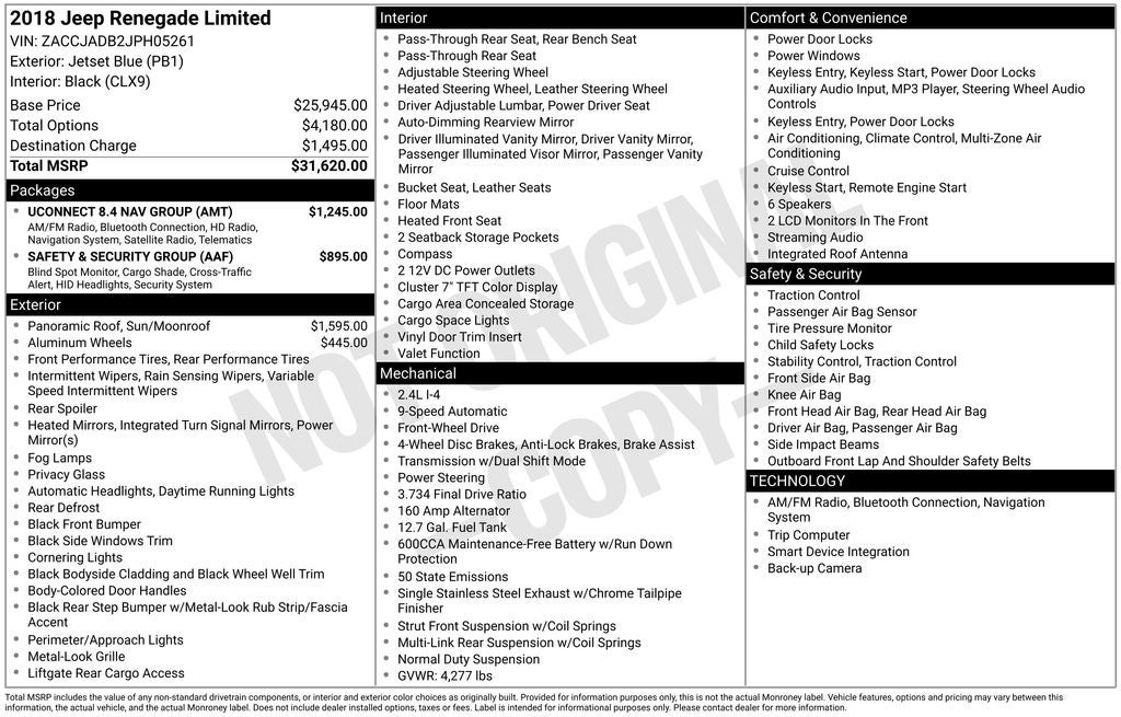 - Vehicle Name: Jeep Renegade