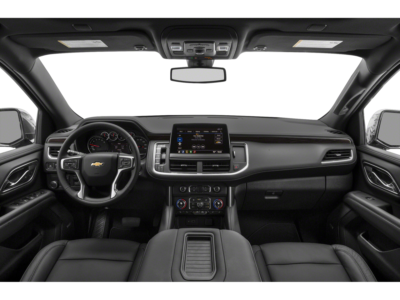 4WD, Black Leather, 10-Way Power Driver & Passenger Seat Adjusters, 1st & 2nd Row Color-Keyed Carpeted Floor Mats, 2-Speed Active Electronic AutoTrac Transfer Case, 2nd Row Pwr Release 60/40 Split-Folding Bench Seat, 3.23 Rear Axle Ratio, 3rd Row 60/40 Power-Folding Split-Bench Seat, 3rd row seats: split-bench, 4-Wheel Disc Brakes, 9 Speakers, ABS brakes, Advanced Trailering Package, Air Conditioning, Alloy wheels, AM/FM radio: SiriusXM with 360L, Apple CarPlay/Android Auto, Auto High-beam Headlights, Auto-Dimming Inside Rear-View Mirror, Auto-dimming Rear-View mirror, Automatic Stop/Start, Automatic temperature control, Bose 9-Speaker Stereo Audio System Feature, Brake assist, Bright Front & Rear Door Sill Plates, Bumpers: body-color, Color-Keyed Carpeting Floor Covering, Compass, Delay-off headlights, Driver & Front Outboard Passenger Airbags, Driver Alert Package, Driver door bin, Driver vanity mirror, Dual front impact airbags, Dual front side impact airbags, Dual-Pane Power Panoramic Sunroof, Electronic Stability Control, Emergency communication system: OnStar and Chevrolet connected services capable, Enhanced Driver Information Center, Extra Capacity Cooling System, Floor Console w/Storage Area, Four wheel independent suspension, Front anti-roll bar, Front Bucket Seats, Front Center Armrest, Front dual zone A/C, Front High-Back Reclining Bucket Seats, Front reading lights, Fully automatic headlights, Garage door transmitter, Hands-Free Rear Power Programmable Liftgate, HD Surround Vision, Heated 2nd Row Outboard Seats, Heated door mirrors, Heated Driver & Front Passenger Seats, Heated front seats, Heated Steering Wheel, Hitch Guidance w/Hitch View, Illuminated entry, Infotainment Display, Integrated Trailer Brake Controller, Lane Change Alert w/Side Blind Zone Alert, Leather steering wheel, Leather-Appointed Seat Trim, Leather-Wrapped Steering Wheel, LED Daytime Running Lamps, Low tire pressure warning, LT Signature Package, Luxury Package, Max Trailering Package, Memory seat, Memory Settings, Memory Settings for Driver, Navigation System, Not Equipped w/Front & Rear Park Assist, Not Equipped w/Heated Rear Outboard Seats, Not Equipped w/Heated/Ventilated Front Seats, Not Equipped w/Steering Column Lock, Occupant sensing airbag, Outside Heated Power-Adjustable Mirrors, Outside temperature display, Overhead airbag, Overhead console, Panic alarm, Passenger door bin, Passenger vanity mirror, Power door mirrors, Power driver seat, Power Liftgate, Power passenger seat, Power Release 2nd Row Bucket Seats, Power steering, Power Tilt & Telescopic Steering Column, Power windows, Preferred Equipment Group 1LT, Premium audio system: Chevrolet Infotainment System 3, Premium Smooth Ride Suspension, Radio: Chevrolet Infotainment 3 Premium System, Rain sensing wipers, Rear air conditioning, Rear anti-roll bar, Rear Cross Traffic Alert, Rear Pedestrian Alert, Rear reading lights, Rear seat center armrest, Rear window defroster, Rear window wiper, Remote keyless entry, Remote Start, Roof rack: rails only, Security system, SiriusXM Radio w/360L, Smart Trailer Integration Indicator, Speed control, Speed-sensing steering, Split folding rear seat, Spoiler, Start/Stop System Disable Button, Steering wheel mounted audio controls, Tachometer, Telescoping steering wheel, Tilt steering wheel, Traction control, Trip computer, Universal Home Remote, Variably intermittent wipers, Voltmeter, Wheels: 18 x 8.5 Bright Silver Painted Aluminum, Wheels: 20 x 9 Painted Aluminum, Wireless Charging, 4WD, Black Leather.