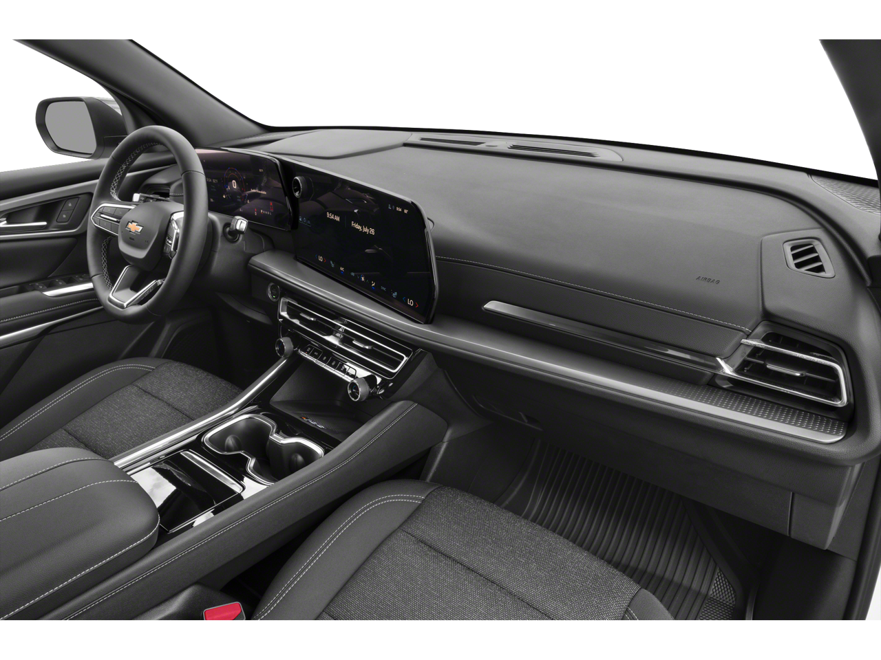 1st & 2nd Row All-Weather Floor Liners (LPO), 3rd Row All-Weather Floor Liner (LPO), 3rd row seats: split-bench, 4-Way Manual Front Passenger Seat Adjuster, 4-Wheel Disc Brakes, 6 Speakers, 6-Speaker Audio System Feature, 8-Way Power Driver Seat Adjuster, ABS brakes, Air Conditioning, Alloy wheels, AM/FM radio: SiriusXM with 360L, Apple CarPlay/Android Auto, Auto High-beam Headlights, Automatic temperature control, Brake assist, Bumpers: body-color, Compass, Delay-off headlights, Driver 4-Way Power Lumbar Seat Adjuster, Driver door bin, Driver vanity mirror, Dual front impact airbags, Dual front side impact airbags, Electronic Stability Control, Emergency communication system, Exterior Parking Camera Rear, Floor Liner Package (LPO), Four wheel independent suspension, Front anti-roll bar, Front Bucket Seats, Front Center Armrest, Front dual zone A/C, Front reading lights, Fully automatic headlights, Heated door mirrors, Heated front seats, Heated steering wheel, Illuminated entry, Low tire pressure warning, Navigation System, Occupant sensing airbag, Outside temperature display, Overhead airbag, Overhead console, Panic alarm, Passenger door bin, Passenger vanity mirror, Power door mirrors, Power driver seat, Power Liftgate, Power steering, Power windows, Preferred Equipment Group 1LT, Premium Cloth Seat Trim, Radio data system, Radio: 17.7 Diagonal Display, Rear air conditioning, Rear anti-roll bar, Rear reading lights, Rear window defroster, Rear window wiper, Remote keyless entry, Security system, SiriusXM w/360L, Speed control, Speed-sensing steering, Spoiler, Steering wheel mounted audio controls, Tachometer, TBD Axle Ratio, Telescoping steering wheel, Tilt steering wheel, Traction control, Trip computer, Turn signal indicator mirrors, Variably intermittent wipers, Voltmeter, Wheels: 18 Grazen Metallic Machined-Face Aluminum.