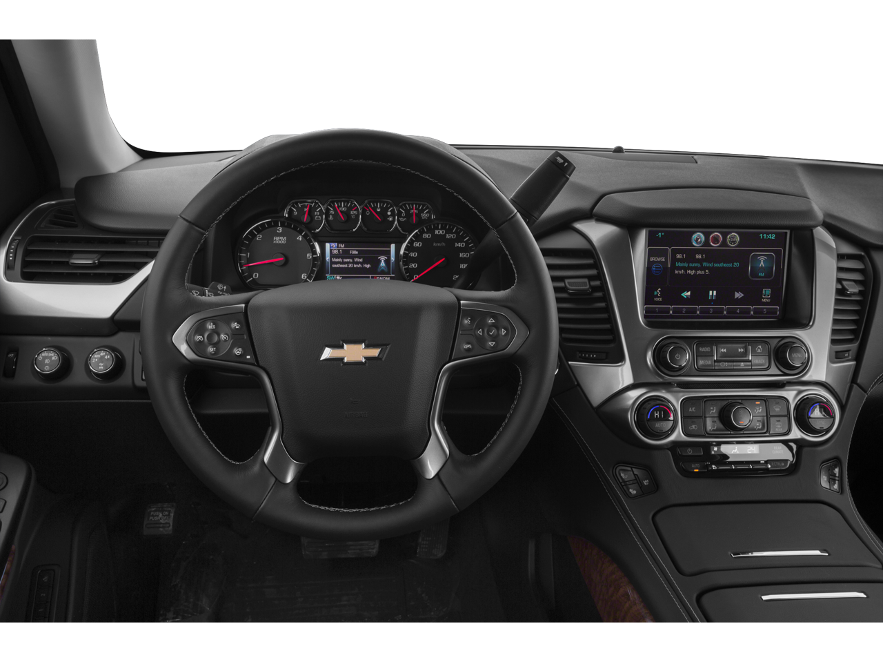 4WD, Cocoa/Mahogany Leather, 10 Speakers, 2-Speed Active Electronic AutoTrac Transfer Case, 3rd Row 60/40 Power Fold Split-Bench, 3rd row seats: split-bench, 4-Wheel Disc Brakes, 5 12-Volt Auxiliary Power Outlets, ABS brakes, Adaptive Cruise Control w/Front Automatic Braking, Adaptive suspension, Adjustable pedals, Air Conditioning, Alloy wheels, AM/FM radio: SiriusXM, Auto-dimming door mirrors, Auto-Dimming Inside Rear-View Mirror, Auto-dimming Rear-View mirror, Automatic temperature control, Black Roof Rack Cross Bars, Bluetooth® For Phone, Body Security Content Theft Protection Package, Bodyside moldings, Bose Centerpoint Premium 10-Speaker Surround Sound, Brake assist, Bumpers: body-color, CD player, Compass, Delay-off headlights, Driver door bin, Driver Inboard & Front Passenger Airbags, Driver vanity mirror, Dual front impact airbags, Dual front side impact airbags, Electronic Stability Control, Emergency communication system: OnStar Directions & Connections, Exterior Parking Camera Rear, Floor Console, Fog Lamps, Forward Collision Alert, Front & Rear Parking Assist, Front anti-roll bar, Front Bucket Seats, Front Center Armrest, Front dual zone A/C, Front fog lights, Front Heated Reclining Bucket Seats, Front reading lights, Front wheel independent suspension, Fully automatic headlights, Garage door transmitter, Hands Free Power Liftgate, Heated & Cooled Driver & Front Passenger Seats, Heated 2nd Row Seats, Heated door mirrors, Heated front seats, Heated Leather Wrapped Steering Wheel, Heated rear seats, Heated steering wheel, Heavy-Duty Rear Locking Differential, High-Intensity Discharge Headlights, Illuminated entry, Integrated Trailer Brake Controller, Keyless Start Switch, Lane Departure Warning & Safety Alert Seat, Low tire pressure warning, Magnetic Ride Control Suspension Package, Max Trailering Package, Memory seat, Memory Settings, Navigation System, Occupant sensing airbag, Outside temperature display, Overhead airbag, Overhead console, Panic alarm, Passenger door bin, Passenger vanity mirror, Passive Entry System, Pedal memory, Perforated Leather-Appointed Seat Trim, Polished Exhaust Tips, Power Adjustable Pedals, Power door mirrors, Power driver seat, Power Liftgate, Power passenger seat, Power Release 2nd Row Bucket Seats, Power steering, Power Sunroof, Power Tilt & Telescoping Steering Column, Power windows, Power-Folding Heated Outside Mirrors, Power-Retractable Assist Steps, Preferred Equipment Group 1LZ, Premium audio system: Chevrolet MyLink, Radio: Chevrolet MyLink w/Navigation/AM/FM Stereo, Rain sensing wipers, Rear air conditioning, Rear anti-roll bar, Rear Cross-Traffic Alert, Rear reading lights, Rear Seat Blu-Ray/DVD Entertainment System, Rear window defroster, Rear window wiper, Remote Keyless Entry, Remote keyless entry, Roof rack: rails only, Security system, Side Blind Zone Alert w/Lane Change Alert, Single-Slot CD/MP3 Player, SiriusXM Satellite Radio, Speed control, Speed-sensing steering, Split folding rear seat, Spoiler, Steering wheel memory, Steering wheel mounted audio controls, Sun, Entertainment & Destinations Package, Tachometer, Telescoping steering wheel, Theft-Deterrent Alarm System, Tilt steering wheel, Traction control, Trip computer, Turn signal indicator mirrors, Universal Home Remote, VAC Power 4-Wheel Disc & 4-Wheel Antilock Brakes, Variably intermittent wipers, Vehicle Inclination Sensor, Vehicle Interior Movement Sensor, Ventilated front seats, Voltmeter, Wheels: 20 x 9 Chrome, Wheels: 20 x 9 Polished-Aluminum, Wireless Charging, 4WD, Cocoa/Mahogany Leather.