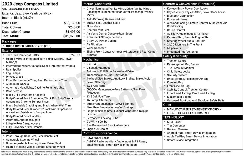 Jazz Blue Pearlcoat 2020 Jeep 4D Sport Utility Compass Limited 2.4L I4 4WD