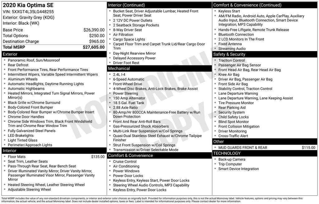 - Vehicle Name: Kia Optima